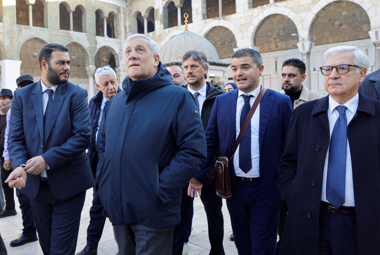 Ο υπουργός Εξωτερικών της Ιταλίας Αντόνιο Ταγιάνι περπατάει στο τζαμί Ομαγιάντ, κατά τη διάρκεια επίσκεψής του στη Δαμασκό. REUTERS/Khalil Ashawi