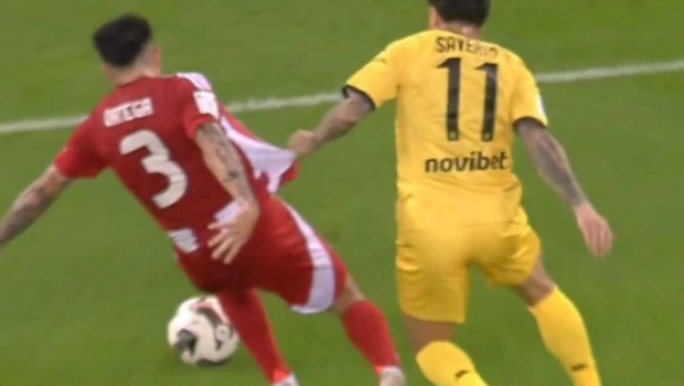 Ο Σαβάριο άρπαξε απο τη φανέλα τον Ορτέγκα στο 32΄, η παράβαση έγινε στην περιοχή του Άρη. Ούτε ο Νίμποργκ όμως, ούτε…