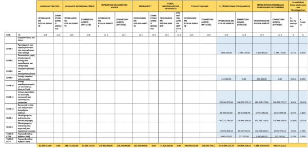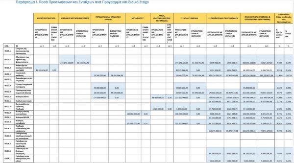 Την πρώτη θέση με ποσοστό 26%, επί του συνολικού π/υ των Προσκλήσεων (3,4 δις ευρώ), καταλαμβάνει ο π/υ των Προσκλήσεων που στοχεύουν στην χρηματοδότηση μίας ολοκληρωμένης χωρικής και βιώσιμης αστικής ανάπτυξης (ΟΧΕ και ΟΧΕ ΒΑΑ – Ειδικός Στόχος RSO5.1.). Ακολουθεί με ποσοστό 15%, ο π/υ των Προσκλήσεων που χρηματοδοτούν δράσεις για την προαγωγή της πρόσβασης στην ύδρευση και τη βιώσιμη διαχείριση του νερού (Ειδικός Στόχος RSO2.5).