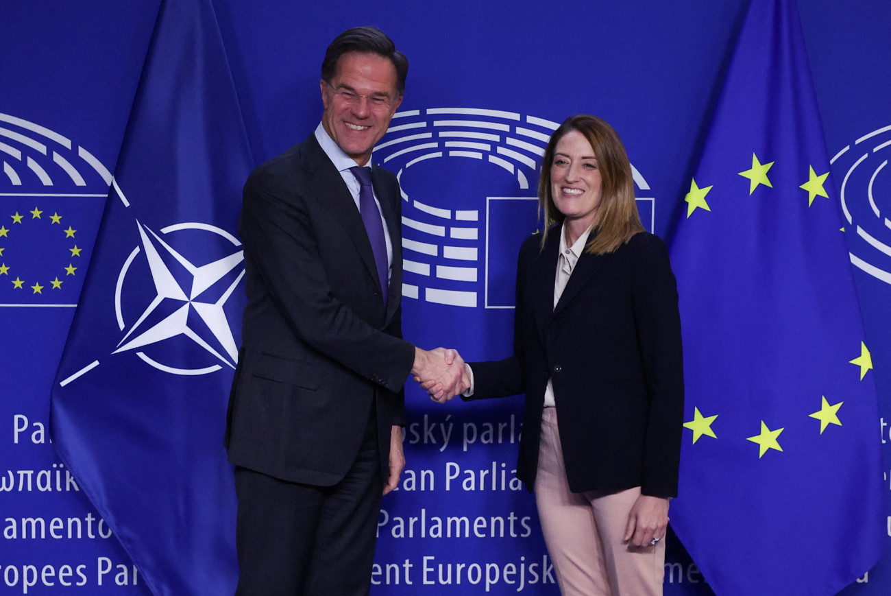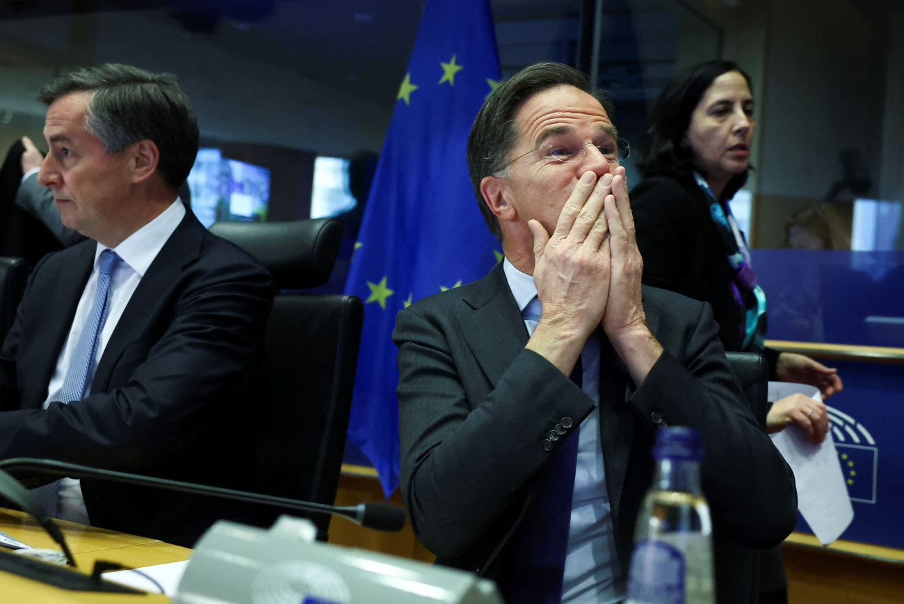 Ο Γενικός Γραμματέας του ΝΑΤΟ Μαρκ Ρούτε φωτογραφίζεται ενθουσιασμένος την ημέρα που μιλάει στην Επιτροπή Εξωτερικών Υποθέσεων του Ευρωπαϊκού Κοινοβουλίου στις Βρυξέλλες, Βέλγιο, 13 Ιανουαρίου 2025. REUTERS/Yves Herman