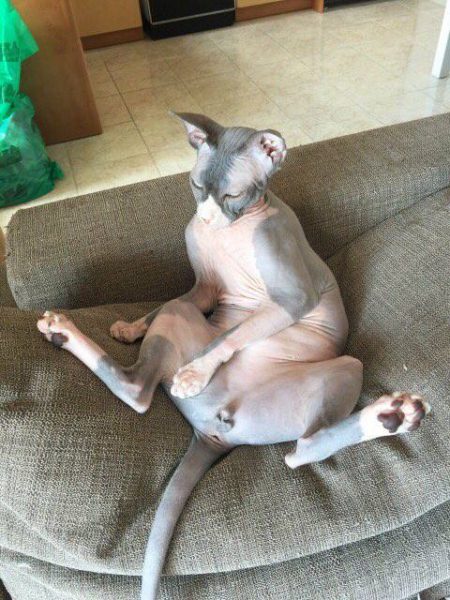 Η Sphynx έχει μόνιμα μια γεμάτη και στρογγυλή κοιλίτσα