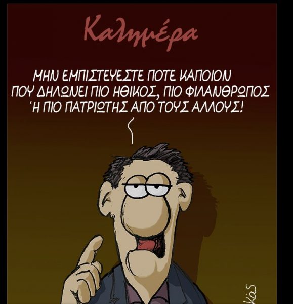 Ο Αρκάς σήμερα λέει καλημέρα με τον εξής τρόπο: «Μην εμπιστεύεστε ποτέ κάποιον που δηλώνει πιο ηθικός, πιο φιλάνθρωπος ή πιο πατριώτης από τους άλλους.»