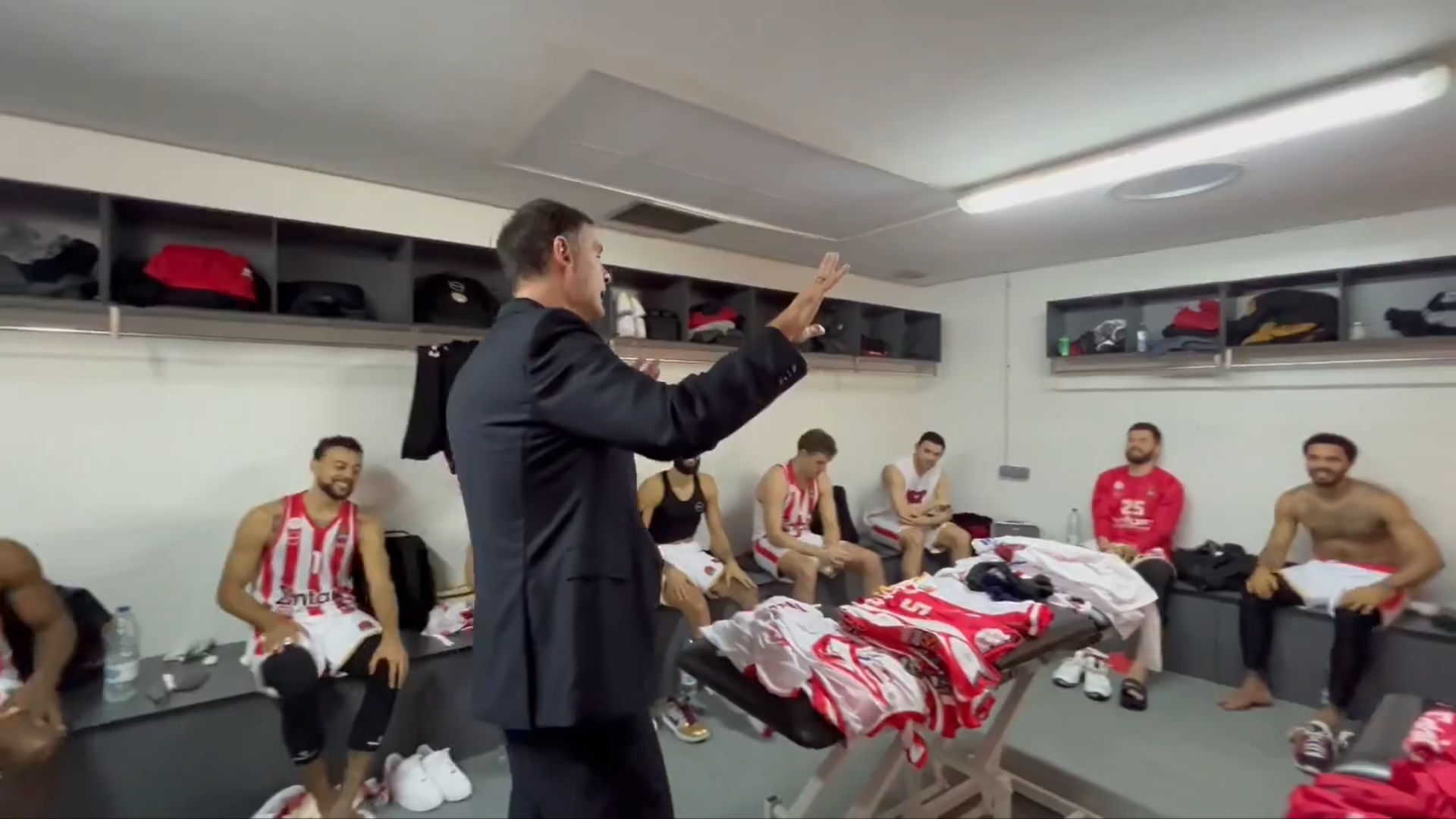 Ο Γιώργος Μπαρτζώκας μίλησε στα αποδυτήρια του Ολυμπιακού μετά τη νίκη επί της Μπασκόνια και συνεχάρη τους παίκτες του και αποθέωσε τον Κώστα Παπανικολάου για το σημαντικό επίτευγμά του.