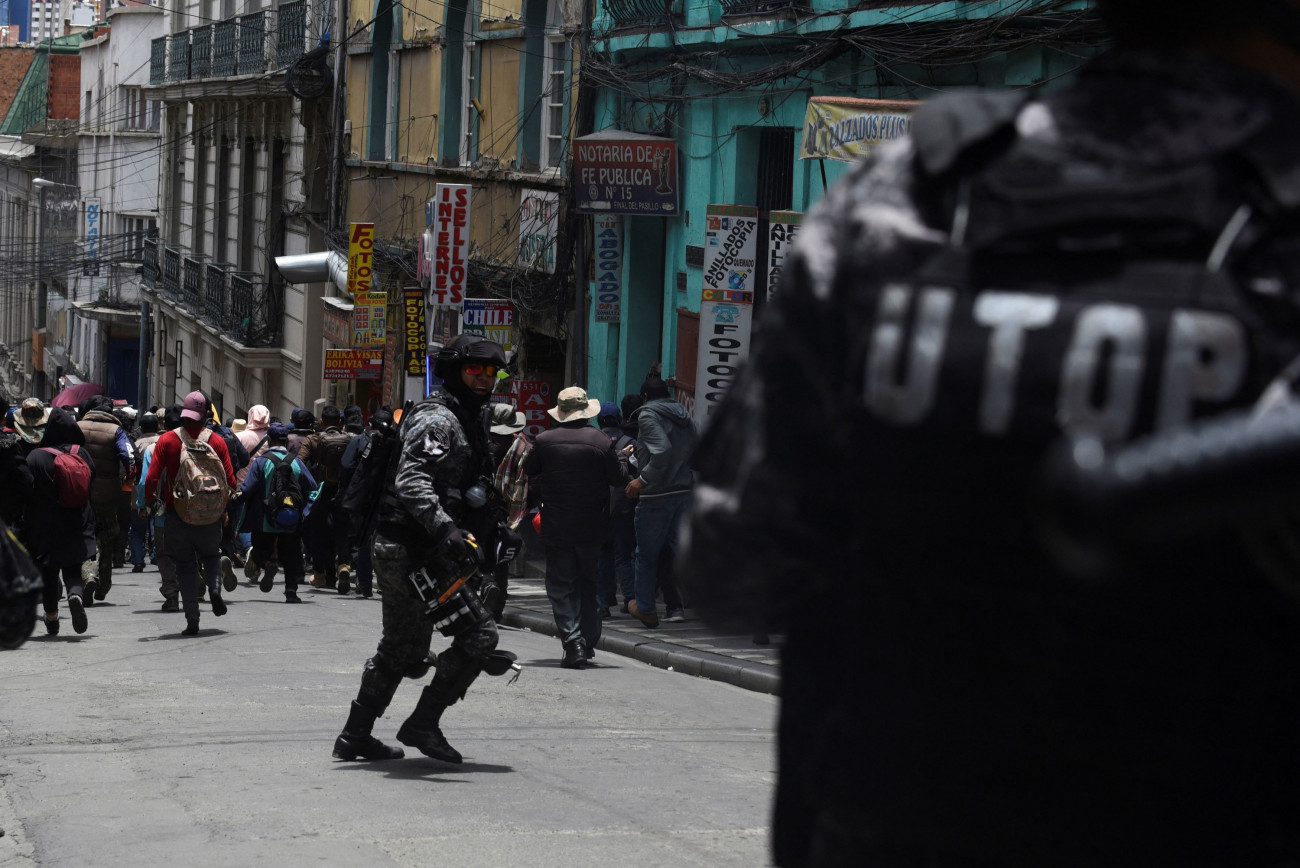 Η αστυνομία συλλαμβάνει υποστηρικτές του πρώην προέδρου Έβο Μοράλες κατά τη διάρκεια διαμαρτυρίας. REUTERS/Claudia Morales