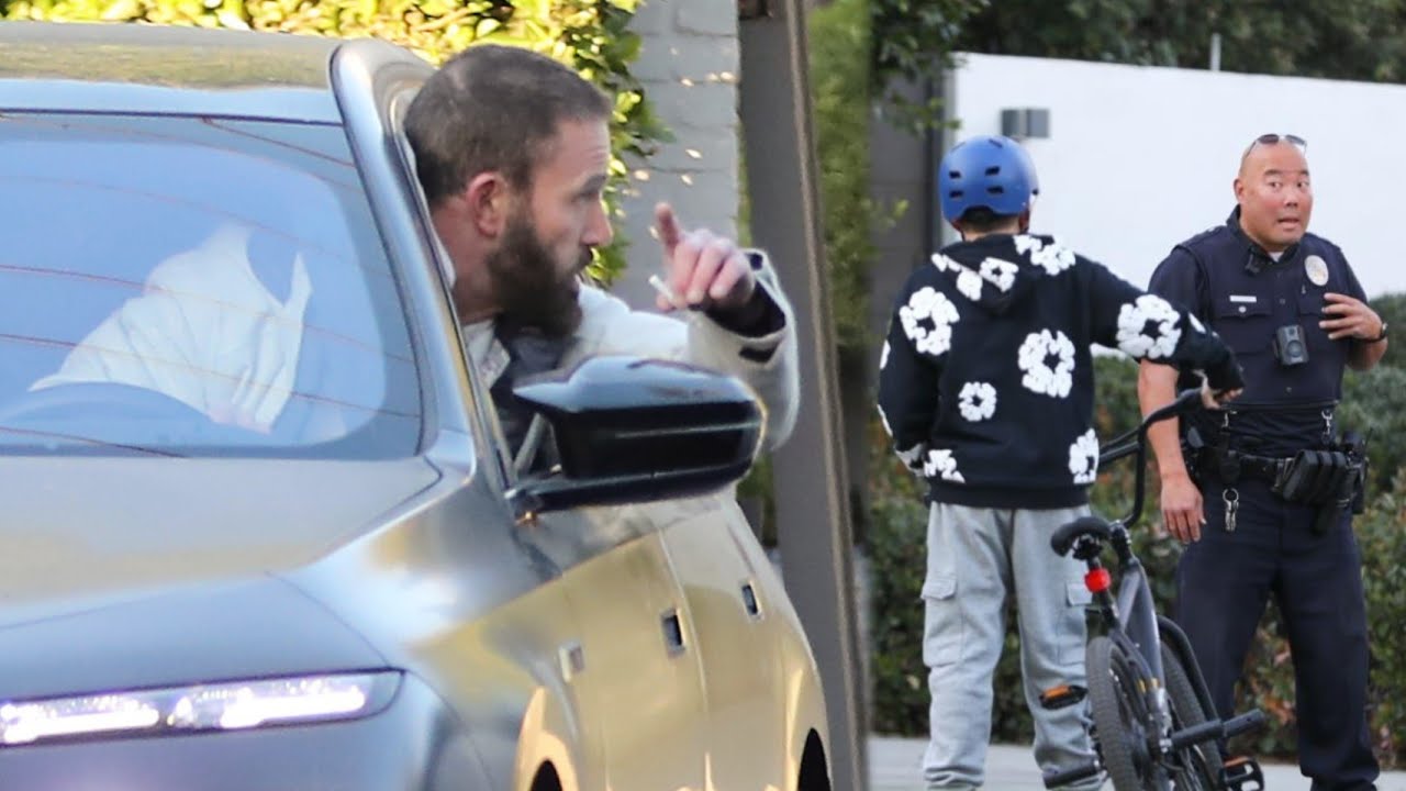 Ο Μπεν Άφλεκ απαθανατίστηκε σε φωτογραφίες που εξασφάλισε το Page Six να σκύβει έξω από το παράθυρο της BMW του για να ανταλλάξει μερικές κουβέντες με δύο αστυνομικούς σε ένα περιπολικό της αστυνομίας.