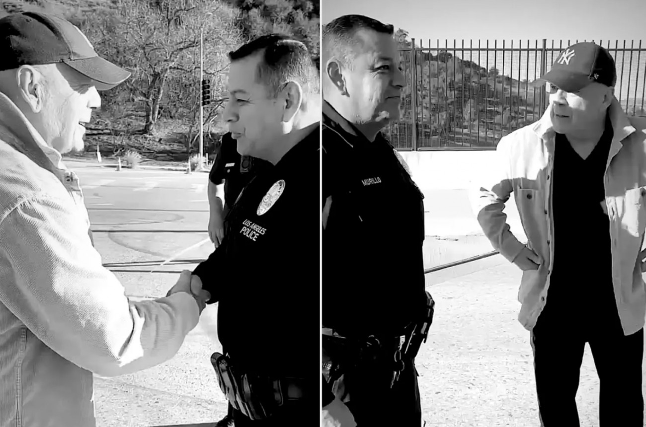 Την Πέμπτη, 16 Ιανουαρίου, η σύζυγος του Μπρους Γουίλις, Έμμα Χέμινγκ Γουίλις, μοιράστηκε ένα ασπρόμαυρο βίντεο στο Instagram που δείχνει τον Γουίλιας να φορά ένα καπέλο New York Yankees και να κάνει χειραψία με έναν αστυνομικό του Λος Άντζελες για να δείξει την ευγνωμοσύνη του.