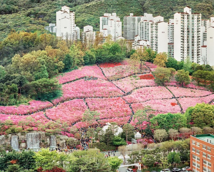 Εν τω μεταξύ, στη φωτογραφία του Royal Azaleas Hill, τα ροζ άνθη κυριαρχούν στη σκηνή, αντανακλώντας τη σημασία των εποχιακών εορτασμών στην Κορέα.