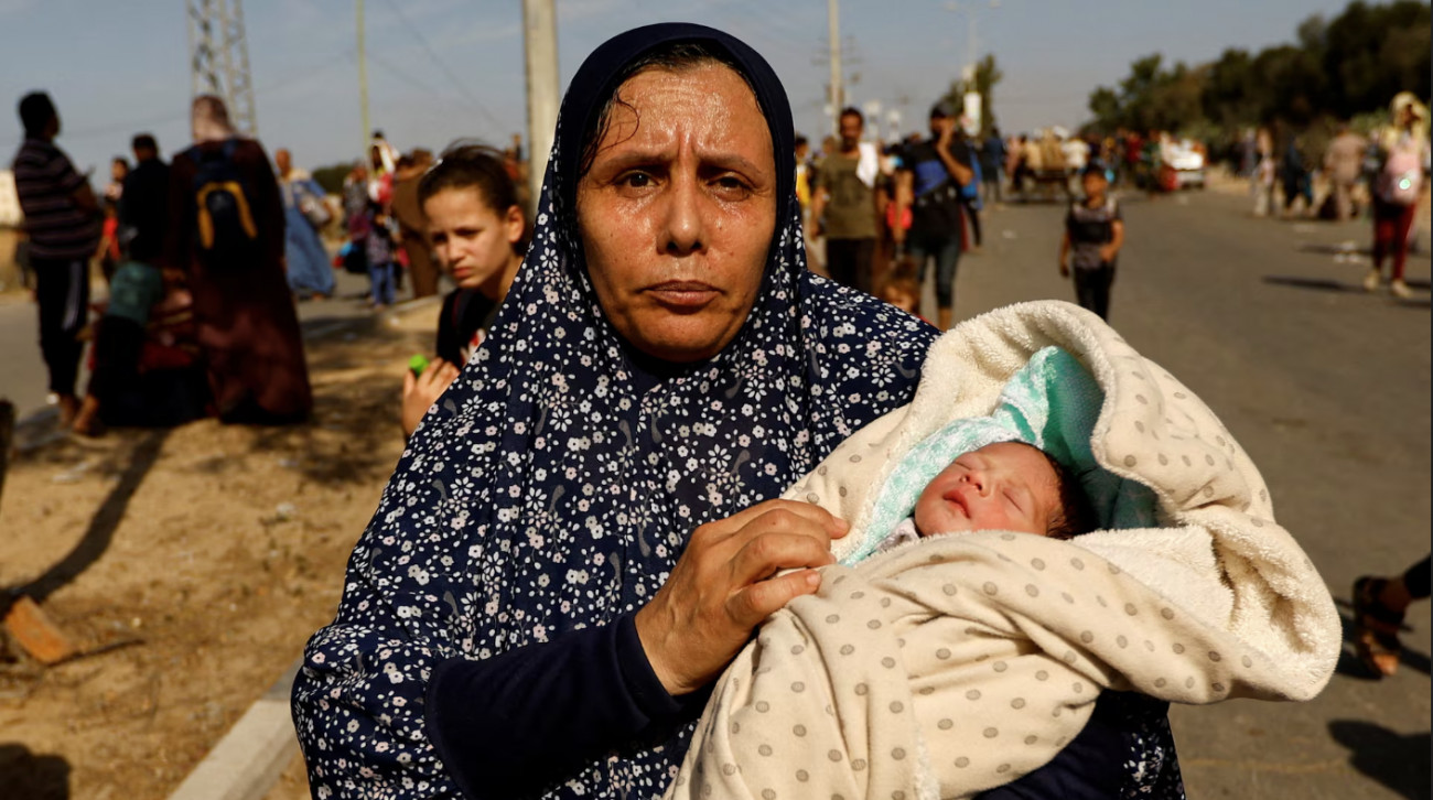 «Πώς οι ΗΠΑ πήραν τον έλεγχο του κόσμου: Το τέλος του διεθνούς δικαίου» είναι ο τίτλος συζήτησης στο YouTube, στην οποία συμμετέχουν ο πρώην αναλυτής της Wall Street Michael Hudson, και ο Richard D. Wolff, και οι δύο αμερικανοί οικονομολόγοι και καθηγητές Οικονομικών (στη φωτογραφία αρχείου του Reuters/Ibraheem Abu Mustafa, επάνω, Παλαιστίνια κρατά στην αγκαλιά της τη νεογέννητη εγγονή της, εγκαταλείπoντας τη βόρεια Λωρίδα της Γάζας για να γλιτώσει από τους ισραηλινούς βομβαρδισμούς).