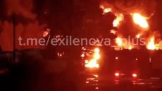 Βίντεο σε πλατφόρμες κοινωνικής δικτύωσης δείχνουν μια αποθήκη καυσίμων να έχει τυλιχθεί στις φλόγες στην περιφέρεια Καλούγκα της Ρωσίας, έπειτα από ουκρανική επίθεση με μη επανδρωμένα αεροσκάφη.