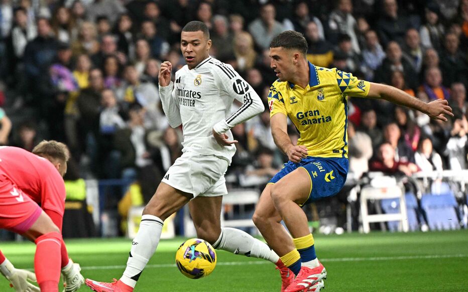 Στα 25 μόλις δευτερόλεπτα ο Σάντρο σέντραρε από δεξιά ο Φάμπιο Σίλβα με πλασέ εξ επαφής άνοιξε το σκορ για τη Λας Πάλμας και πάγωσε το «Σαντιάγκο Μπερναμπέου». Από εκεί και πέρα η Ρεάλ ήταν καταιγιστική και στο 16ο λεπτό κέρδισε πέναλτι με τον Εμπαπέ να ευστοχεί και να ισοφαρίζει, ενώ με την συμπλήρωση μισής ώρας ο Γάλλος σούπερ σταρ σούταρε, ο Βάθκεθ πήρε το ριμπάουντ, έστρωσε στον Ντίαζ και εκείνος έκανε το 2-1. Μάλιστα, πριν ολοκληρωθεί το πρώτο μέρος, και συγκεκριμένα στο 41ο λεπτό, ο Εμπαπέ πλάσαρε με τη μία από το ύψος του πέναλτι για το 3-1, μετά από ωραίο γύρισμα του Βάθκεθ.