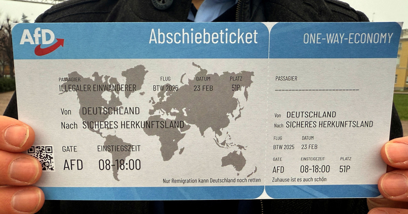 Για να αποτραπεί η «πλημμύρα της χώρας με αποδέκτες κοινωνικής πρόνοιας που δεν επιθυμούν να ενσωματωθούν», το AfD πιέζει για μια «συνολική επαναμετανάστευση». Αυτό περιλαμβάνει την απέλαση εγκληματιών και αλλοδαπών χωρίς καθεστώς παραμονής.