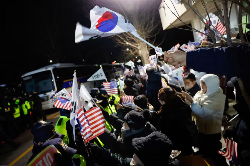 Ο καθαιρεθείς πρόεδρος συνελήφθη για την κήρυξη στρατιωτικού νόμου στις 3 Δεκεμβρίου. Ο Γιουν κάλεσε τους υποστηρικτές του να είναι ειρηνικοί, η αστυνομία να είναι ανεκτική, όπως δηλώνει το Reuters. Οι οπαδοί του όπως και ο ίδιος είναι δεξιοί της Alt Right σκηνής και τα αντιμετωπίζουν όλα ως «στημένες κατηγορίες».