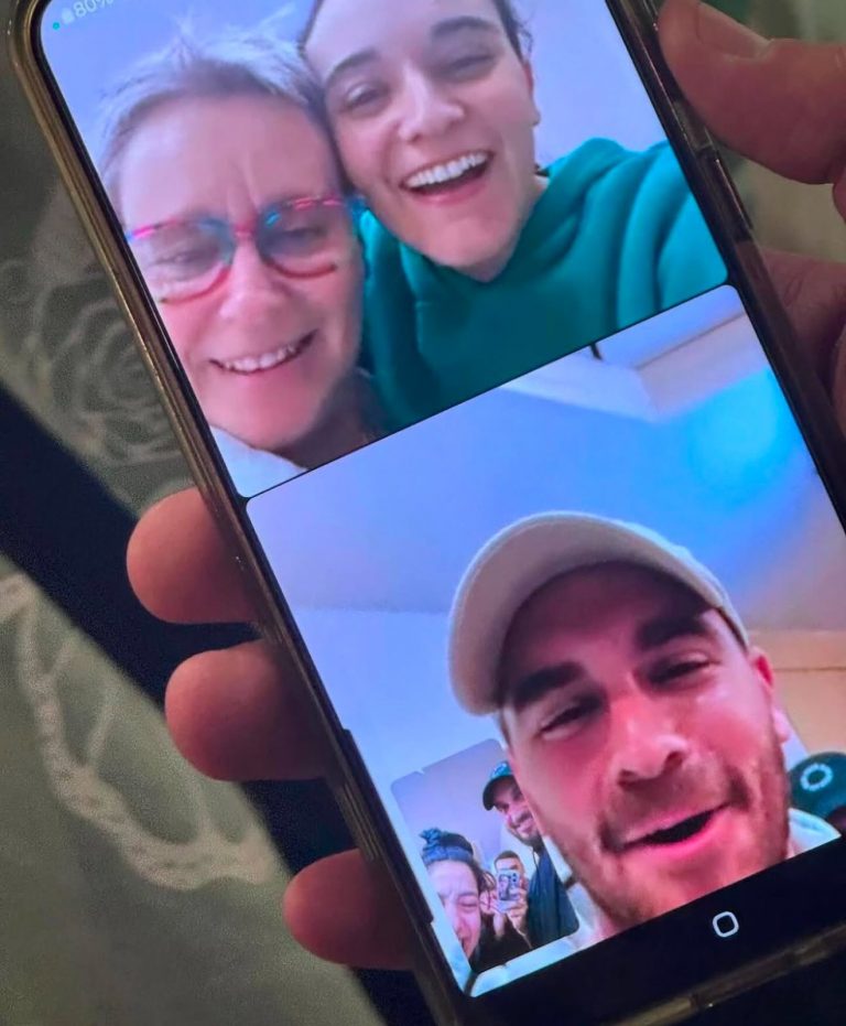 Εικόνες που αναρτήθηκαν στα μέσα κοινωνικής δικτύωσης δείχνουν την πρώην όμηρο Έμιλι Νταμάρι σε βιντεοκλήση με την οικογένειά της.