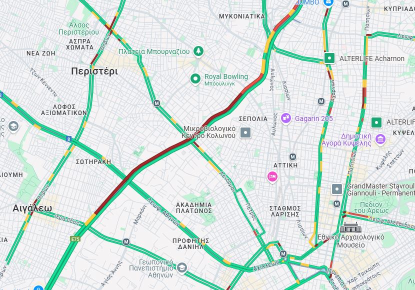 Οι οδηγοί κινούνται με χαμηλές ταχύτητες από τις Τρεις Γέφυρες μέχρι το Αιγάλεω