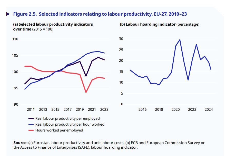 Σύμφωνα με την ΕΚΤ το φαινόμενο αυτό συνδέεται με τη μείωση στην παραγωγικότητα της εργασίας σε περιόδους οικονομικής ύφεσης, αλλά και την πιο αργή άνοδο σε περιόδους ανάκαμψης.