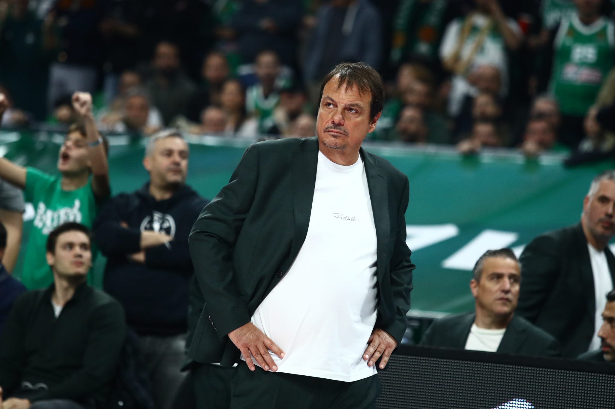 Ο Εργκίν Αταμάν έδωσε συγχαρητήρια στους παίκτες του Παναθηναϊκού μετά την νίκη επί του Ολυμπιακού για την Stoiximan GBL.