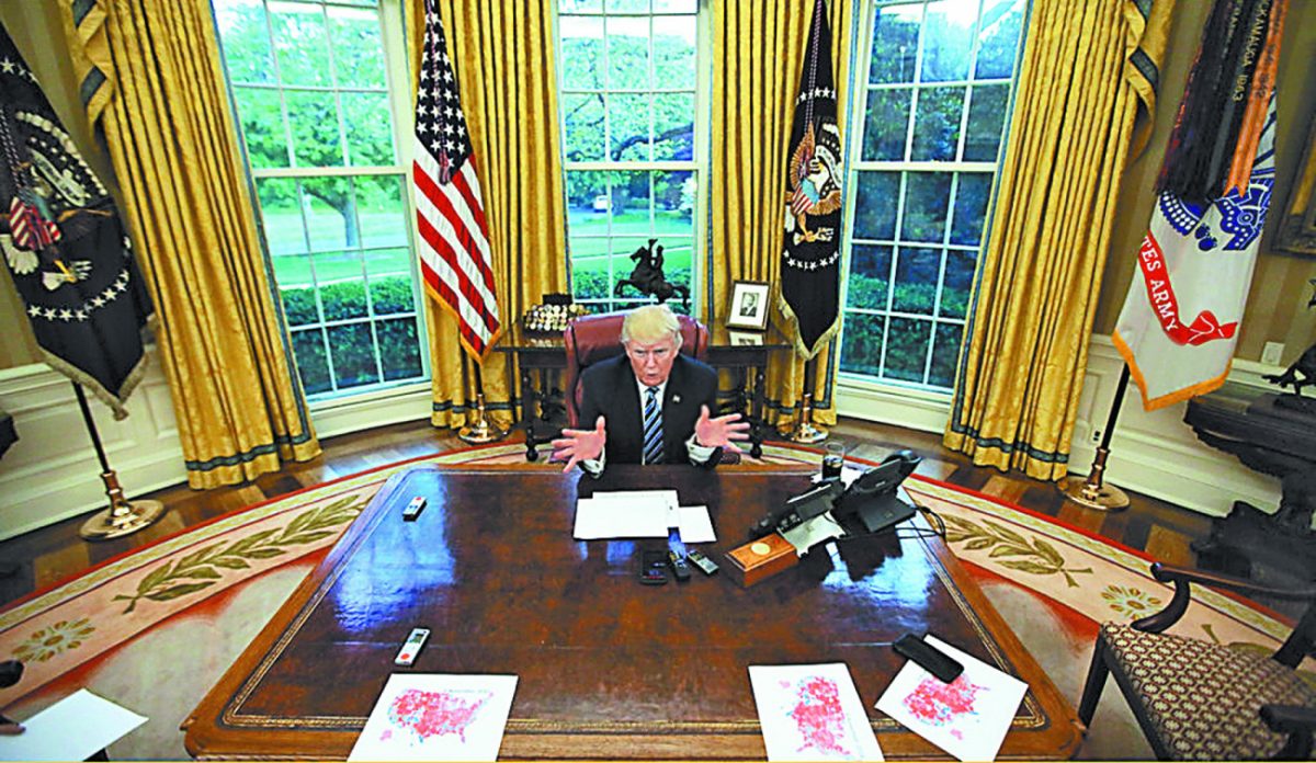 Ο Ντόναλντ Τραμπ στο Οβάλ Γραφείο, στην αρχή της πρώτης προεδρικής θητείας του, το 2017 (REUTERS/Carlos Barria/File Photo)