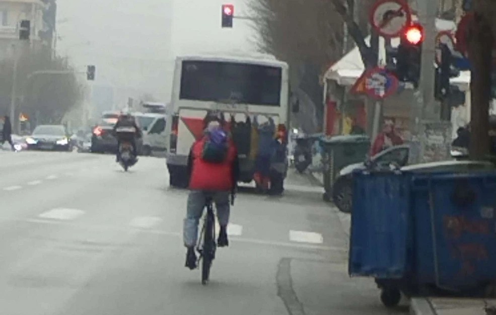 Τρεις νεαροί διακινδύνευσαν τη ζωή τους, καθώς κρεμάστηκαν από το πίσω μέρος ενός λεωφορείου στη Θεσσαλονίκη, στο κέντρο της πόλης.