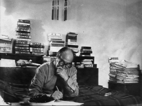 Η μοίρα του λογοτέχνη είναι ανακατεμένη με τη μοίρα του ανθρώπου. Με τη διαφορά ότι μες στο στέρνο του πάσχουν πολλοί. Γι’ αυτό, σε μια τέτοια εποχή, γεμάτη αίματα και προδομένες προσδοκίες, ζει περισσότερο με τους εφιάλτες παρά με τους ανθρώπους.