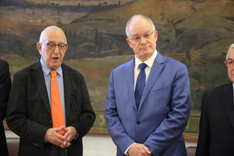 Ακολούθησε η τελετή παράδοσης – παραλαβής. Ο Κωνσταντίνος Τασούλας μαζί με τους αντιπροέδρους του Σώματος, υποδέχτηκαν τον νέο πρόεδρο στο γραφείο του.