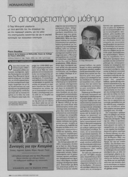 Σε ένα μεταγενέστερο φύλλο του «Βήματος», που είχε κυκλοφορήσει λίγον καιρό μετά το θάνατο του Μπουρντιέ, υπήρχε ένα ακόμα άρθρο της Λαμπίρη – Δημάκη αφιερωμένο στον εξέχοντα γάλλο κοινωνιολόγο και διανοούμενο.