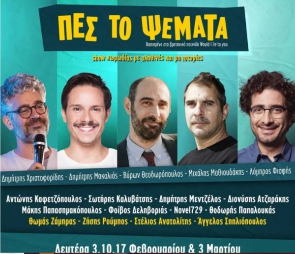 Πρόκειται για την παράσταση «Πες το Ψέματα» που βασίζεται στο δημοφιλές βρετανικό format «Would I lie to you». Η παράσταση είναι προγραμματισμένη για τον Φεβρουάριο στο Θέατρο Ακροπόλ και σε αυτή συμμετέχουν οι: