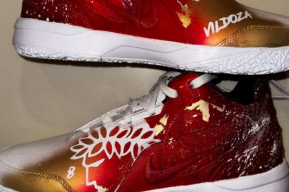 Τα παπούτσια του Αργεντινού μπασκετμπολίστα έχουν το σήμα και τα χρώματα των ερυθρολεύκων, αλλά και το όνομά του Βιλντόζα και τον αριθμό του.