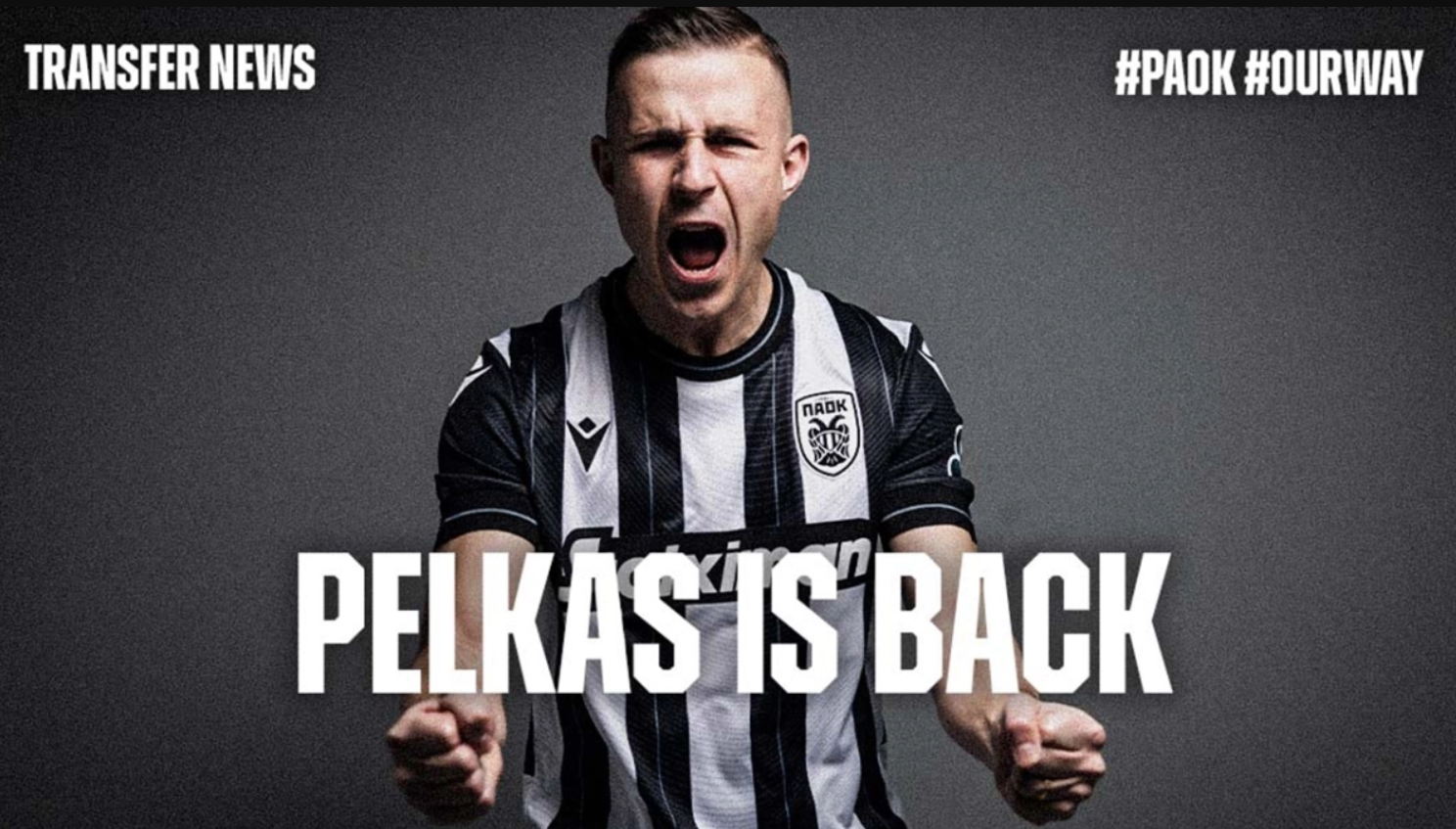 «The Joker is back! Η ΠΑΕ ΠΑΟΚ ανακοινώνει την απόκτηση του Δημήτρη Πέλκα, με ελεύθερη μεταγραφή από τη Μπασακσεχίρ. Ο διεθνής ποδοσφαιριστής υπέγραψε συμβόλαιο συνεργασίας για 2,5 χρόνια και θα φοράει τη φανέλα με το νούμερο 80.