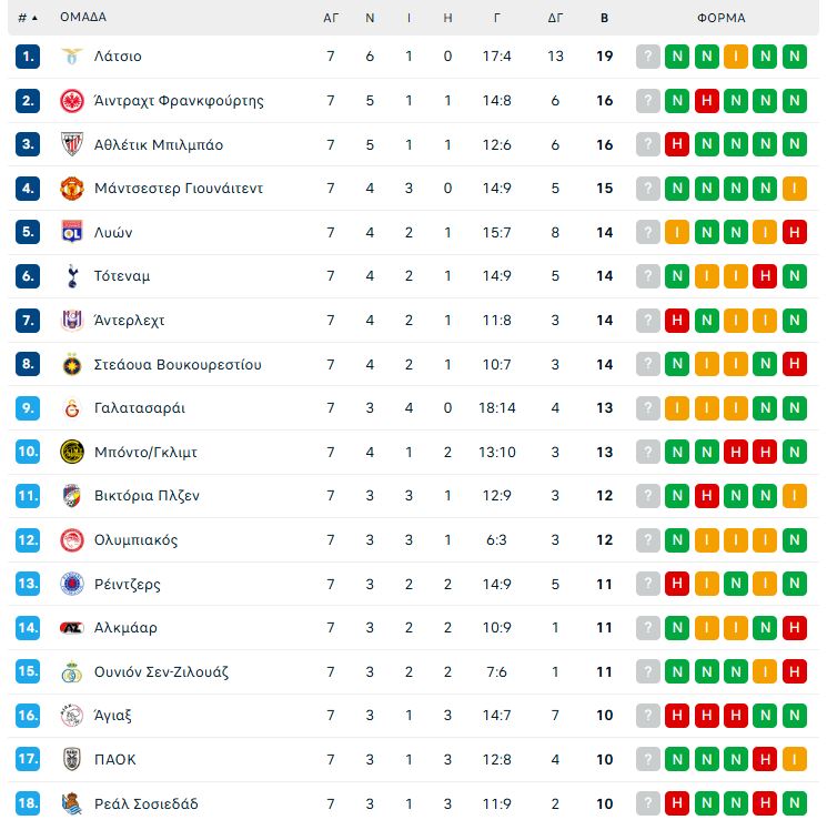 Με τη νίκη της κόντρα στη Σοσιεδάδ, στο ντέρμπι της αγωνιστικής, η Λάτσιο πέρασε στη φάση των «16». Μέτρια, ξανά, αλλά νίκησε η Γιουνάιτεντ, έχασε από τη Ρίγα και έμπλεξε ο Άγιαξ.