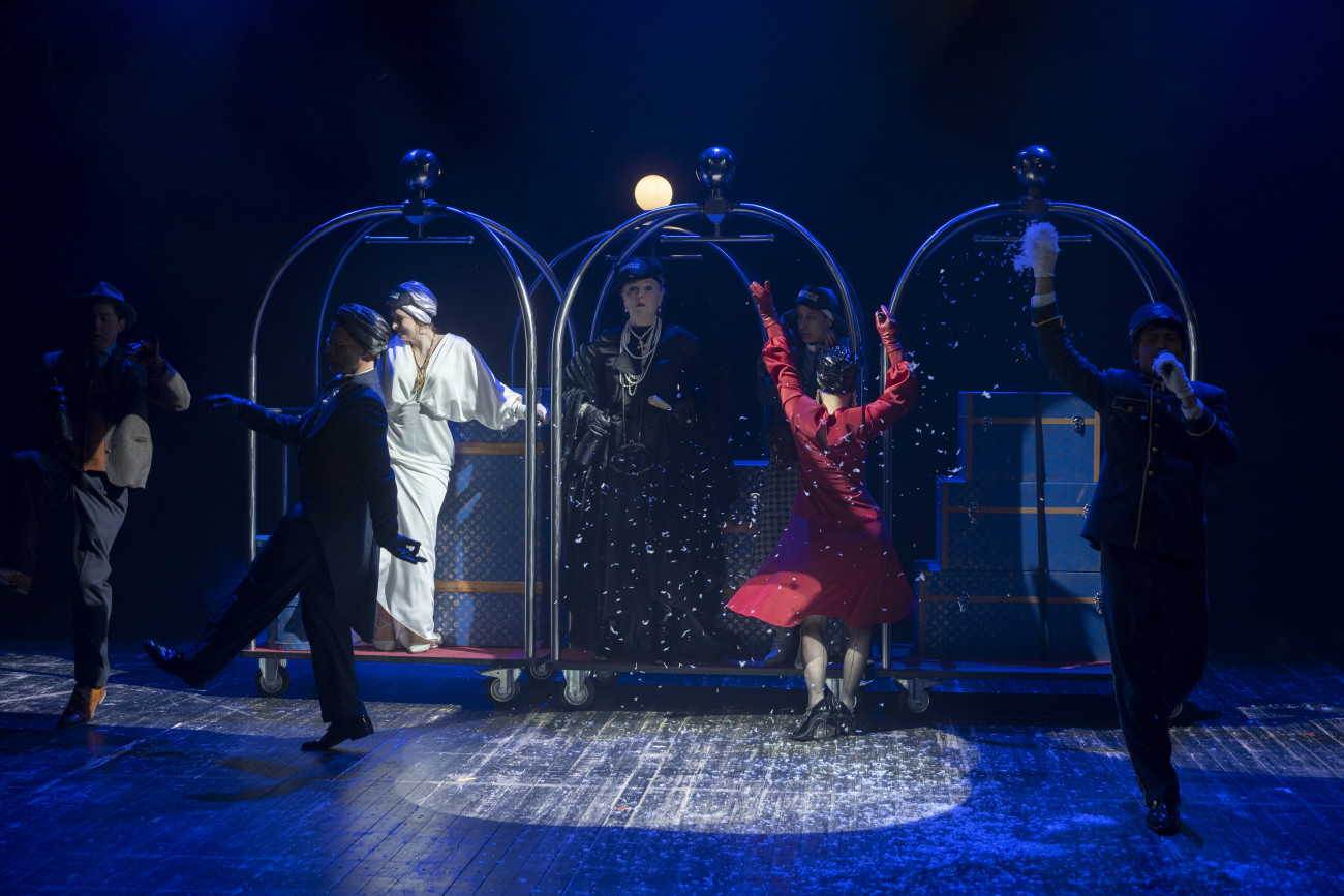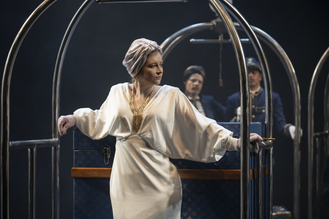 Κάτι που προκάλεσε πολλές επιφυλάξεις, εάν θα λειτουργούσε -και όμως, λειτούργησε και ευχαριστώ τις συνεργάτιδες και συνεργάτες μου για την εμπιστοσύνη. Το κάναμε, το χαρήκαμε. Εφόσον ανέλαβα και την σκηνογραφία του πρότζεκτ, η κεντρική ερώτηση που με οδήγησε στη διαδικασία ήταν: Ποιο θα ήταν το ελάχιστο στοιχείο αφήγησης, με το οποίο μπορώ να εξασφαλίσω μια ιστορία, η οποία ζει ουσιαστικά από το γκλαμουράτο σύμπαν ενός ξενοδοχείου πολυτελείας, που ταξιδεύει σε ράγες;