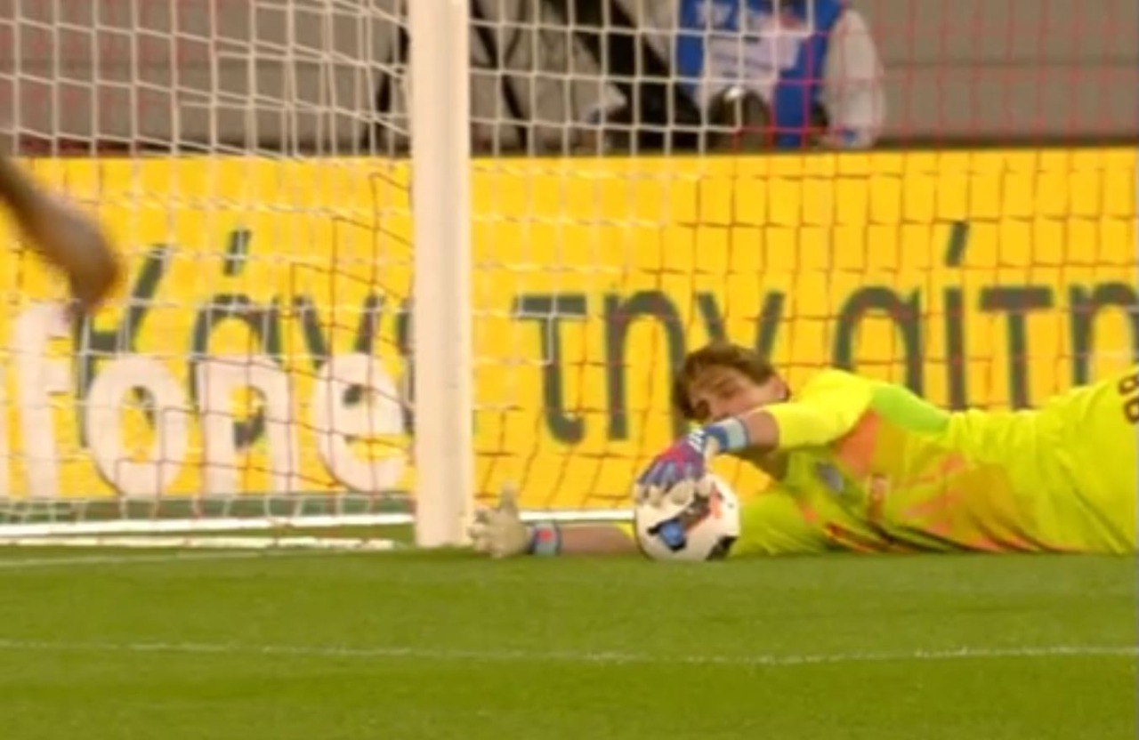 Ο τερματοφύλακας των «ερυθρόλευκων» ήταν σ’ ετοιμότητα και μπλόκαρε την μπάλα.