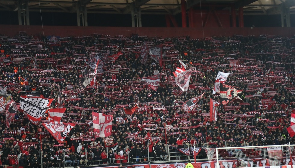 Οι «ερυθρόλευκοι» οπαδοί έχουν συνειδητοποιήσει την κρισιμότητα της αναμέτρησης. Και έχουν κατακλύσει από νωρίς το φαληρικό στάδιο δημιουργώντας εκπληκτική ατμόσφαιρα.
