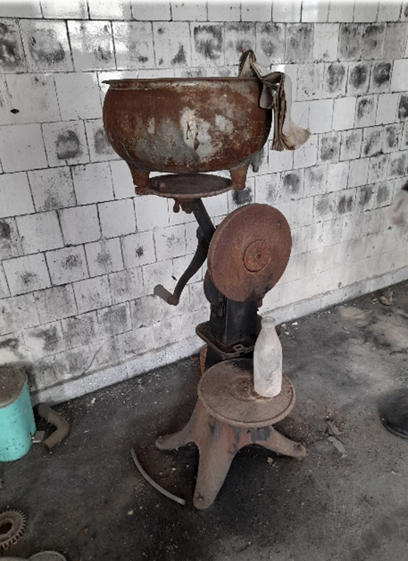 Τόσο τα μεταλλικά όσο και τα ξύλινα στοιχεία των εργαλείων και μηχανημάτων βρίσκονται σε κακή κατάσταση, κυρίως εξαιτίας της μακροχρόνιας αποθήκευσής τους σε ακατάλληλες περιβαλλοντικές συνθήκες.