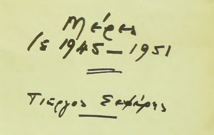 Ελπίζω να σας μετάδωσα την πεποίθησή μου πως οι «Μέρες του 1945-51» θα έχουν το ίδιο ανάστημα και θ’ αγαπηθούν τόσο όσο και τα «Ποιήματα» και οι «Δοκιμές» σας.