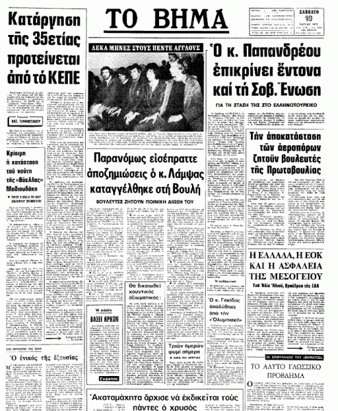 «ΤΟ ΒΗΜΑ», 19.3.1977, Ιστορικό Αρχείο «ΤΟ ΒΗΜΑ» & «ΤΑ ΝΕΑ»
