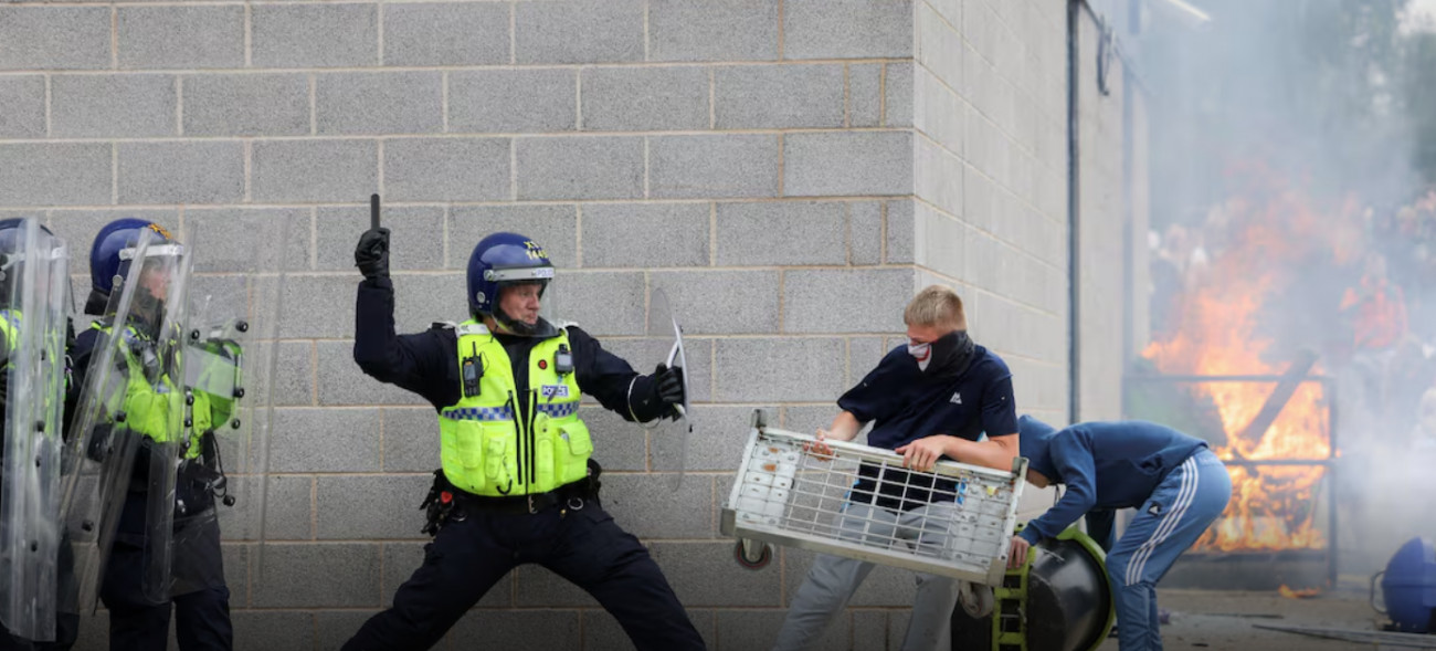 Οι ταραχές έλαβαν χώρα τον περασμένο Ιούλιο, όταν η χώρα συγκλονίστηκε από τους βίαιους θανάτους τριών μικρών κοριτσιών στο Σάουθπορτ. Η Μπέμπε Κινγκ, η Άλις ντα Σίλβα Αγκουγιάρ και η Έλσι Ντοτ Στάνκομπ δολοφονήθηκαν ενώ συμμετείχαν σε μάθημα χορού με θέμα την Τέιλορ Σουίφτ κατά τη διάρκεια των καλοκαιρινών τους διακοπών.