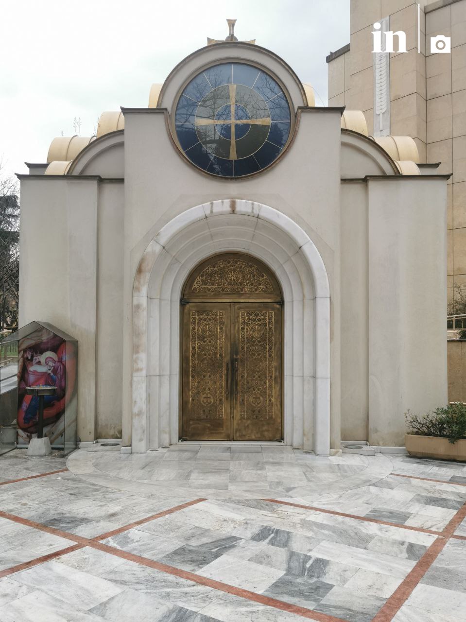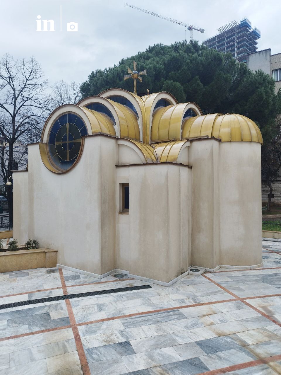 Στην οροφή βλέπουμε μια έκρηξη από την οποία γεννιέται το σύμπαν. Στον σκληρό πυρήνα αυτής της έκρηξης τα τρία σύμβολα της Αγίας Τριάδας. Στο δυτικό τοίχο αυτό που συναντάμε είναι στην ουσία η ιστορική εξέλιξη της νεότερης ιστορίας της εκκλησίας της Αλβανίας».