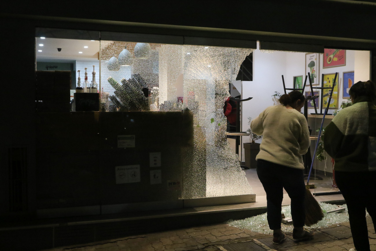 Σπασμένη βιτρίνα σούπερ μάρκετ στην πλατεία Κυψέλης