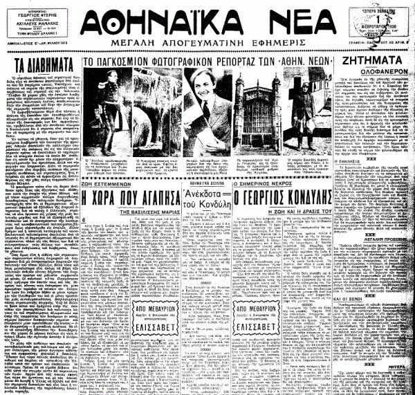 Εις το ίδιον αυτό δωμάτιον όπου προ ενός ακόμη μηνός ο Γεώργιος Κονδύλης εδέχετο τον γράφοντα διά να του ομιλήση περί των συγκινήσεων της πολιτικής ζωής, κείται τώρα το φέρετρόν του. Ήτο η τελευταία του συνέντευξις. Ομιλητικός, με το χονδρό αλάτι του λαϊκού αστείου, ειρωνευόμενος τους πάντας και τα πάντα, πρώτον δε και σκληρότερον από όλους τον ίδιον τον εαυτόν του, σοβαρευόμενος κάποτε, κρίνων κατά τον τρόπον του πρόσωπα και πράγματα, χωρίς όμως κακίαν, ενεθυμήθη παλαιούς και νέους καιρούς, μίαν ζωήν δεκαπέντε χρόνων κατά την οποίαν αυτός και ο συνομιλητής του ευρέθησαν εις τας δύο αντιθέτους όχθας του ποταμού.