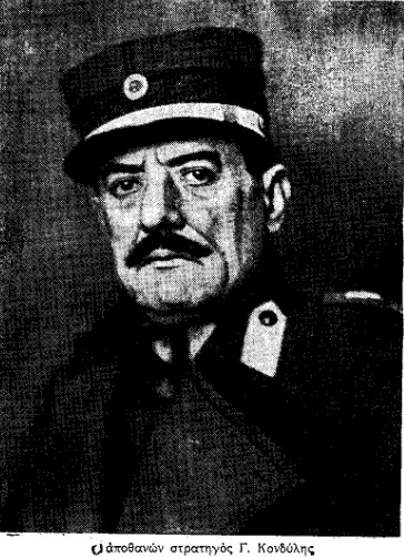 Έξω από την επί της οδού Πατριάρχου Ιωακείμ οικίαν του κόσμος πολύς συνωθείτο κατά την χθεσινήν βροχεράν νύκτα του Ιανουαρίου. Ο Κονδύλης νεκρός! Ποιος να το πιστεύση χωρίς να το ιδή… Παρελαύνουν προ του φερέτρου. Τέσσαρες εύζωνοι, αρρενωποί και σκυθρωποί, φρουρούν ακίνητοι. Με την μεγάλην στολήν στρατηγού ο Γεώργιος Κονδύλης διά πρώτην φοράν αναπαύεται. Είνε γαλήνιος. Τίποτε δεν προδίδει την καταιγίδα που εκόπασε. Μελανόν είνε το πρόσωπόν του, αλλά δεν φοβίζει. Ο θάνατος έχει απλώση την ημερότητα επί του νεκρού.
