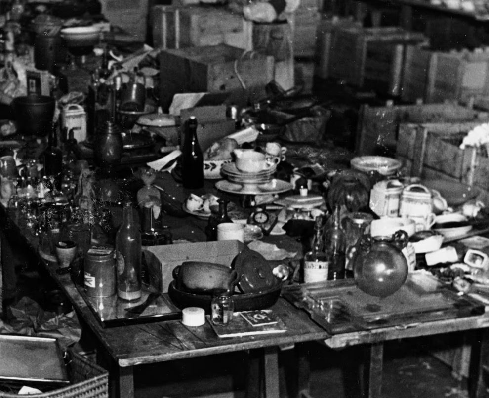 Φωτογραφία: Αντικείμενα από εβραϊκά σπίτια στο Παρίσι κατά τη διάρκεια του πολέμου ταξινομούνται μετά την απομάκρυνση των οικογενειών. Bunderarchiv Koblenz