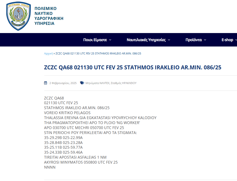 Τουρκική κορβέτα εμφανίστηκε να πλέει «ανοιχτά» της Κρήτης μετά από Navtex που εξέδωσε η Ελλάδα για «εργασίες εγκατάστασης υποβρύχιου καλωδίου».