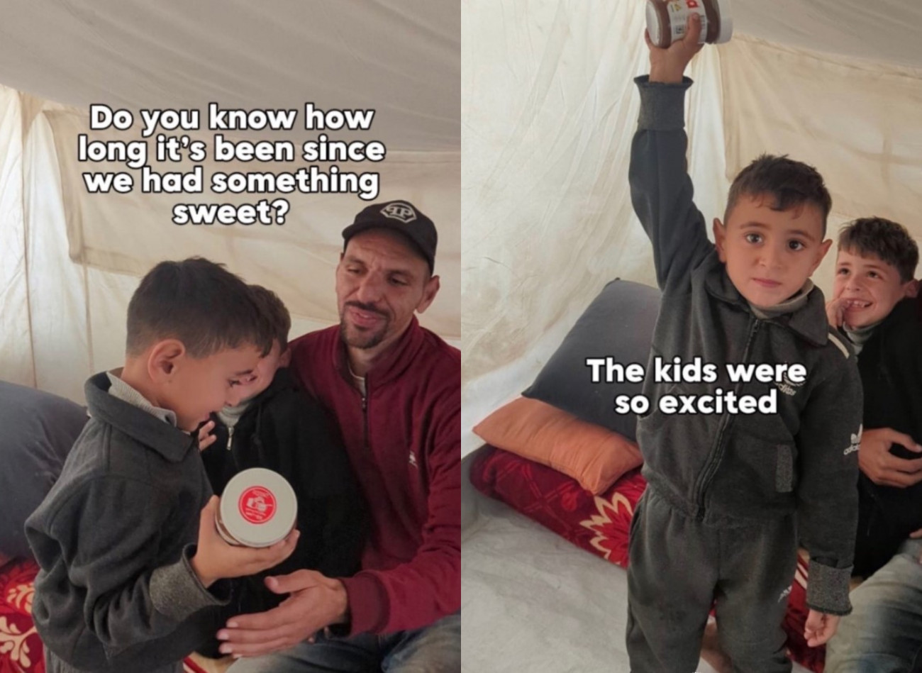 Η ιστορία δύο παιδιών από τη Γάζα είναι χαρακτηριστική και συγκινεί. Ο πατέρας τους τούς έκανε έκπληξη δίνοντας τους ένα βάζο με πραλίνα φουντουκιού και η μητέρα τους βιντεοσκόπησε την αντίδρασή τους.