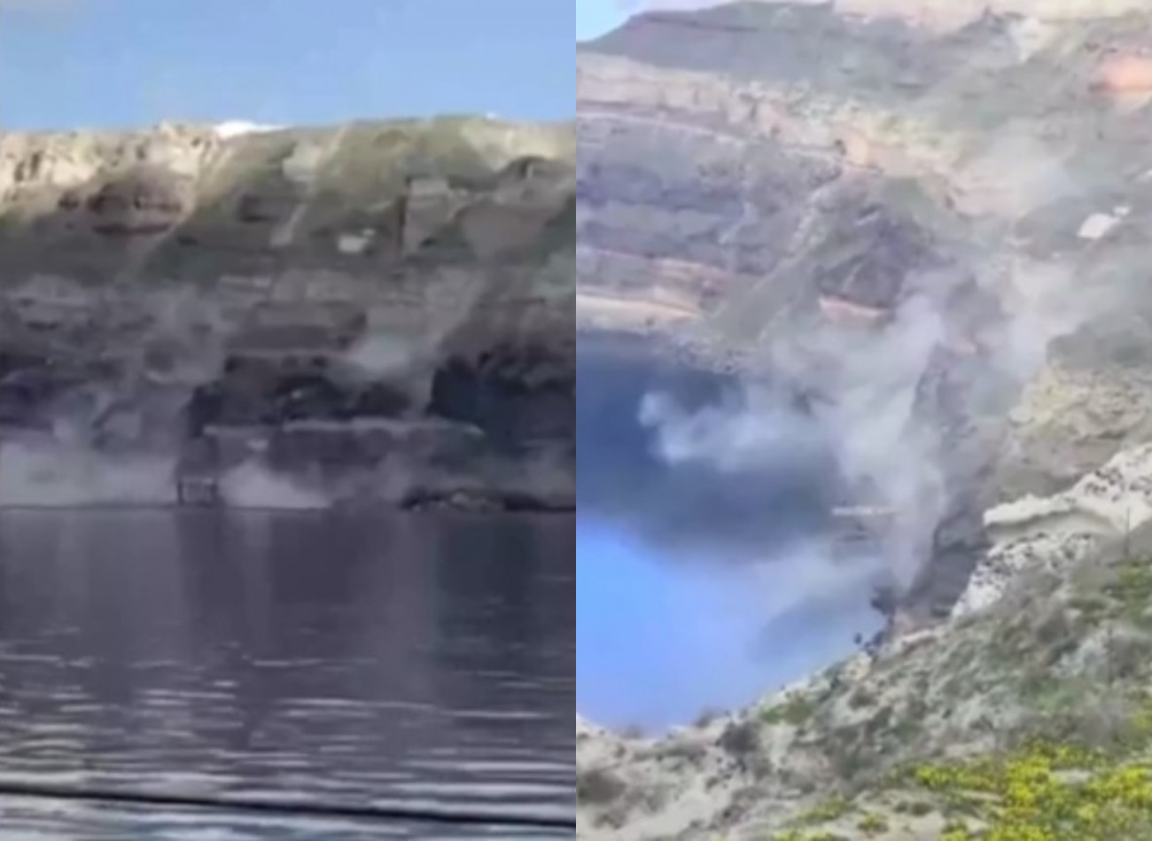 Σε βίντεο καταγράφεται ο ήχος των συνεχών δονήσεων στη Σαντορίνη ενώ παράλληλα διακρίνονται κατολισθήσεις στην καλντέρα - Από το σημείο σηκώνεται συνέχεια ένα σύννεφο σκόνης και χώματος