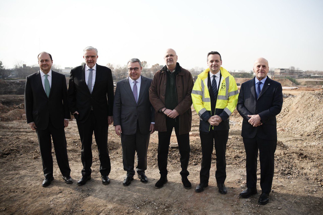 Παράλληλα, από την κοινοπραξία ΤΕΡΝΑ – ΜΥΤΙΛΗΝΑΙΟΣ – ΑΚΤΩΡ, παρόντες ήταν ο Διευθύνων Σύμβουλος της ΤΕΡΝΑ κ. Χρήστος Παναγιωτόπουλος, ο Αντιπρόεδρος της ΙΝΤΡΑΚΑΤ κ. Αναστάσιος Αρανίτης και ο Αντιπρόεδρος και Διευθύνων Σύμβουλος ΜΕΤΚΑ ΑΤΕ, κ. Ντίνος Μπενρουμπή. Κατά την επίσκεψή τους ξεναγήθηκαν από τον Διευθυντή του έργου, κ. Αναστάσιο Φωτιάδη, και είχαν την ευκαιρία να διαπιστώσουν τη μεγάλη πρόοδο των έργων το τελευταίο διάστημα, αφού έχει ολοκληρωθεί άνω του 90% των εκσκαφών για το νέο γήπεδο και ξεκίνησαν οι εργασίες θεμελίωσης σε τμήμα του σκάμματος.