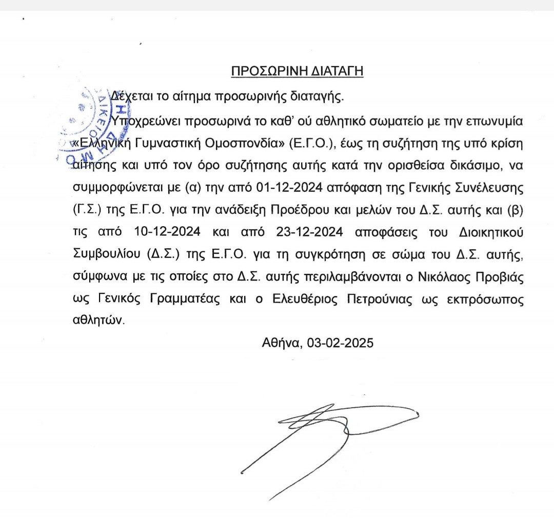 Η κόντρα στην Ελληνική Γυμναστική Ομοσπονδία μεταξύ του Προέδρου Βασίλη Τσολακίδη και των Πετρούνια και Προβιά είχε νικητές τον Ολυμπιονίκη και τον πρώην κριτή, όπως έμαθε το In.gr.