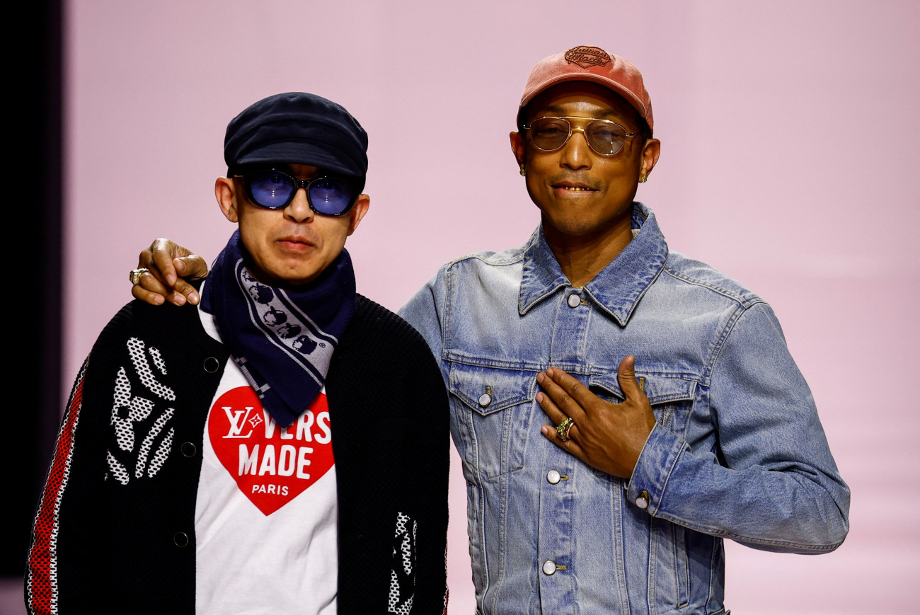 Ο σχεδιαστής και μουσικός Pharrell Williams μαζί με τον Nigo, καλλιτεχνικό σχεδιαστή του Kenzo, με τον οποίο συνδημιουργεί μια συλλογή, στο πλαίσιο της ανδρικής ένδυσης Φθινόπωρο/Χειμώνας 2025-2026 για τον οίκο μόδας Louis Vuitton / REUTERS