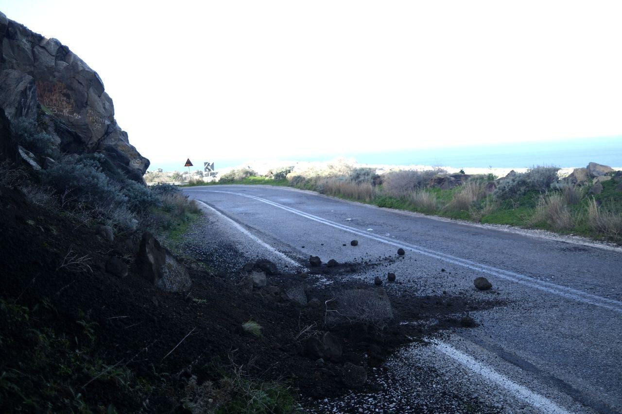 Καθώς οι σεισμικές δονήσεις συνεχίζονται, κατολισθήσεις σημειώνονται σε αρκετά σημεία του νησιού.