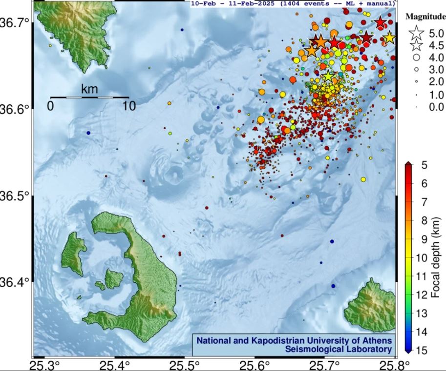 Πάνω από 15.300 σεισμοί έχουν ανιχνευθεί και εντοπίσει συνολικά το Εργαστήριο Σεισμολογίας (ΕΣ) του ΕΚΠΑ από την έναρξη της σεισμικής δραστηριότητας στη ζώνη μεταξύ Σαντορίνης και Αμοργού από τις 26 Ιανουαρίου έως και τις 10 Φεβρουαρίου 2025.