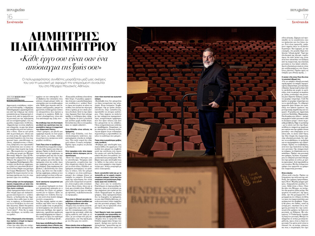 Στις ενδιαφέρουσες συναντήσεις αυτής της εβδομάδας είναι αυτή με τον πολυγραφότατο συνθέτη Δημήτρη Παπαδημητρίου που μας μιλάει και για την επικείμενη συναυλία του στο Μέγαρο Μουσικής.